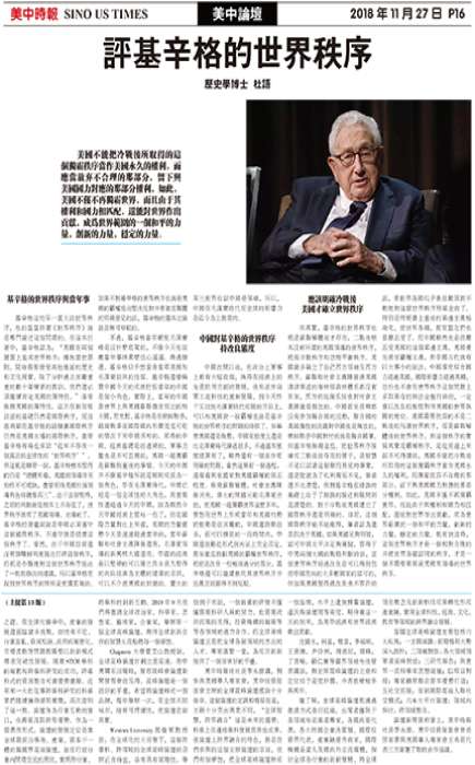 中国对基辛格的世界秩序持改良态度