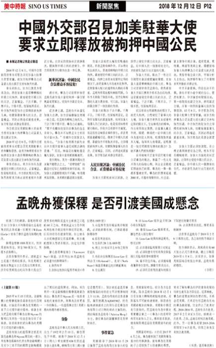 连日来,华为公司首席财务官孟晚舟被加拿大当局拘押一事引发舆论高度关注,受到中方严正交涉、强烈抗议。