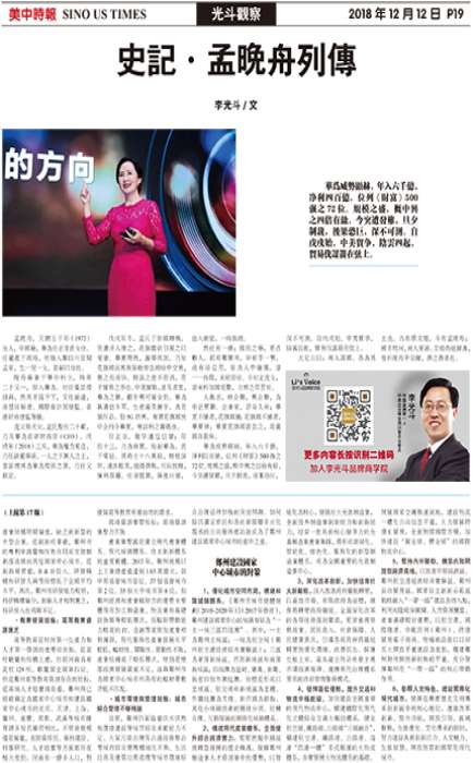 虎父无犬女,孟氏蛰伏二十载,乃及华为首席财务官(CFO)。戊戌年(2018)三月,华为权力更迭,乃任副董事长,一人之下万人之上,众皆视其为华为接班之选,乃任父钦定。