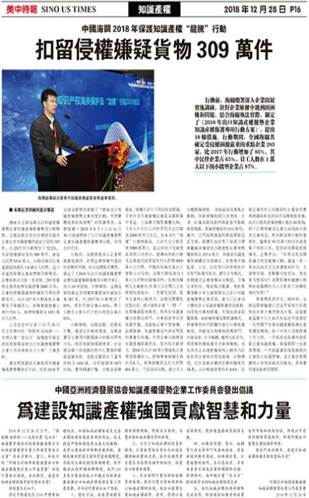 2018年12月26日上午,“强服务话创新——支持企业‘走出去’论坛暨中国亚洲经济发展协会出口知识产权优势企业工作委员会成立大会”在北京举行。会上,新成立的“中国亚洲经济发展协会出口知识产权优势企业工作委员会”向同行业发出倡议,共同携手,为建设知识产权强国贡献智慧和力量!