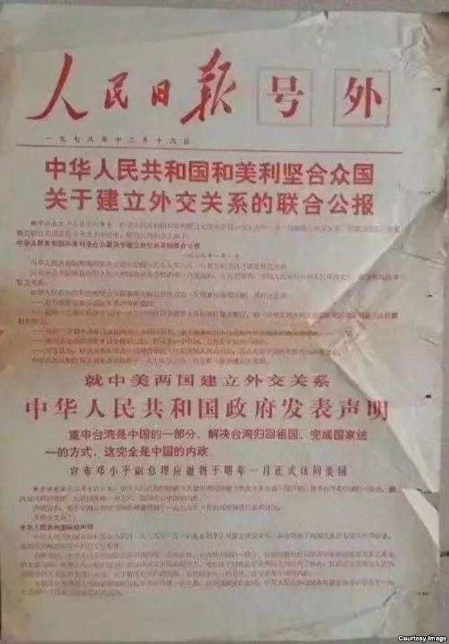 1978年12月16日中国的人民日报就美中建交发表红色号外。