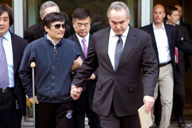 未受任何控罪但被中国政府软禁在家的盲人法律维权人士陈光诚4月下旬逃离山东省临沂东师古村,千里逃亡,进入美国驻北京大使馆。5月2日,时任美国大使骆家辉陪同陈光诚离开美国使馆,前往北京市朝阳医院接受治疗。后经两国政府协商,陈光诚获准赴美。