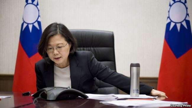 台湾总统蔡英文与美国总统当选人特朗普越洋通话。( 台湾总统府提供)